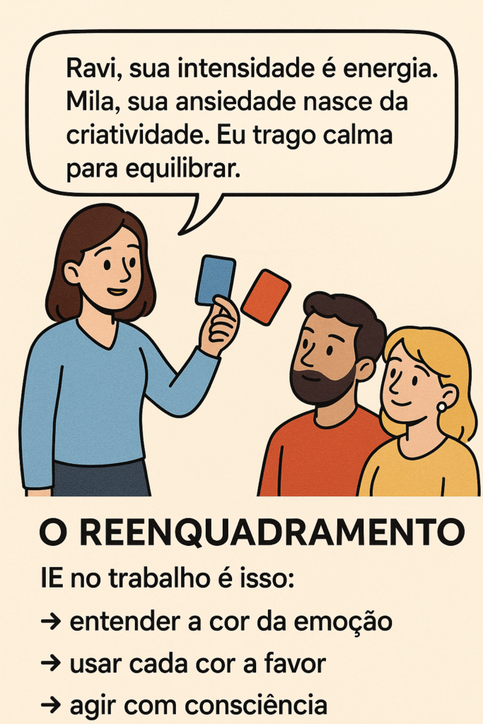 — “Exatamente. IE é isso: reconhecer a cor da emoção, acolher… e usar do jeito certo.”
