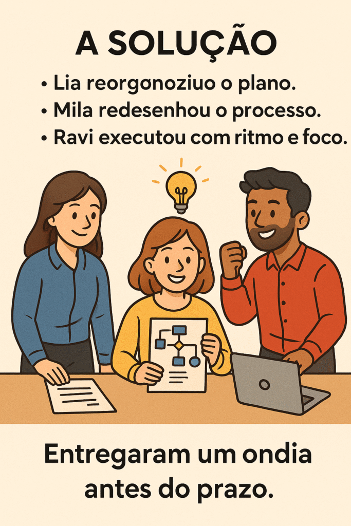 E então os três caminharam para fora do Escritório Aurora com a sensação de que algo tinha mudado — não só no prazo do projeto, mas na forma como enxergavam a si mesmos e uns aos outros.