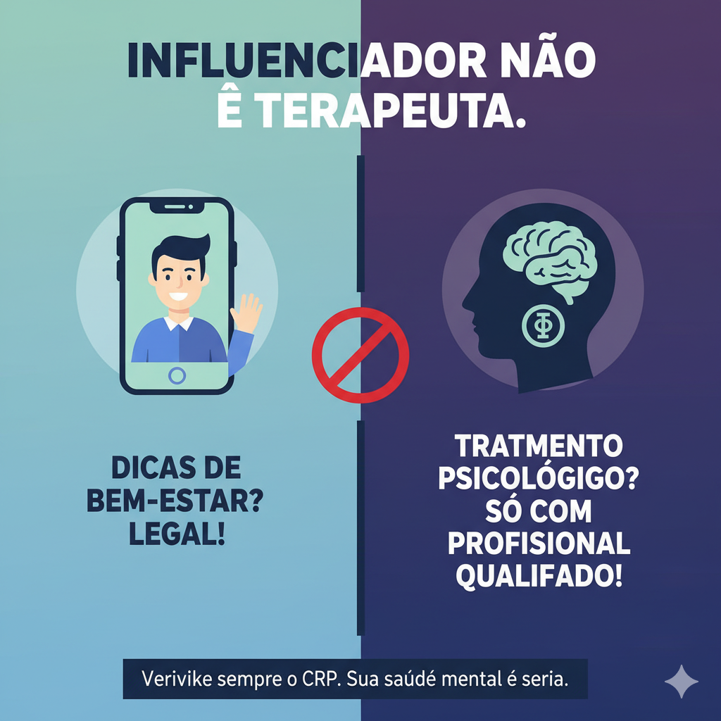Um influenciador pode te inspirar a “cuidar do seu jardim” (bem-estar). Um terapeuta é o profissional treinado para “operar o seu cérebro” (saúde). Você não entregaria seu cérebro a um jardineiro.